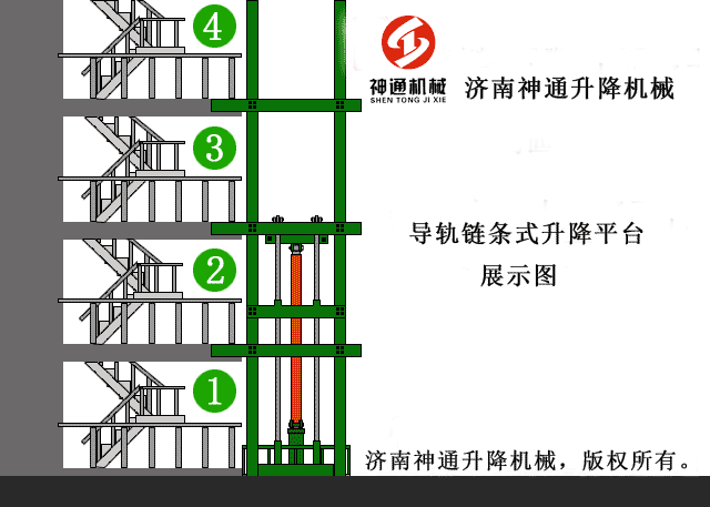 單導(dǎo)軌鏈條式升降貨梯主要用各種工作層間貨物上下運(yùn)送;立體車庫和地下車庫二層以上高樓間、無法開挖地坑場所、頂層高度不能到達(dá)要求的場合等比較難解決的狹小空間,濟(jì)南神通升降機(jī)械有限公司將竭盡全力為你打量身打造高效率的升降平臺。升降機(jī)設(shè)有安全的液壓系統(tǒng)設(shè)置防墜、上下層門互動連鎖,各樓層和升降平臺工作臺面均可設(shè)置操作按鈕,實(shí)現(xiàn)多點(diǎn)控制。電動升降機(jī)結(jié)構(gòu)堅(jiān)固,承載量大,升降平穩(wěn),安裝維護(hù)簡單方便,是經(jīng)濟(jì)實(shí)用的低樓層間替代電梯的理想貨物輸送設(shè)備。 根據(jù)升降貨梯的安裝環(huán)境和使用要求,選擇不同的可選配置,可取得更好的使用效果。